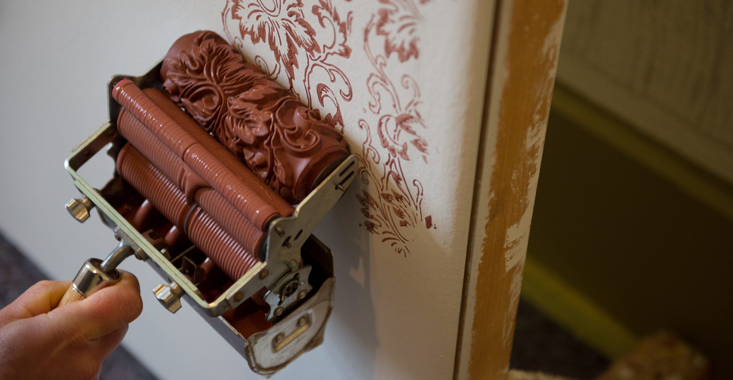 Vorführung Malerhandwerk: Verwendung der Musterrollenwalze an der Wand