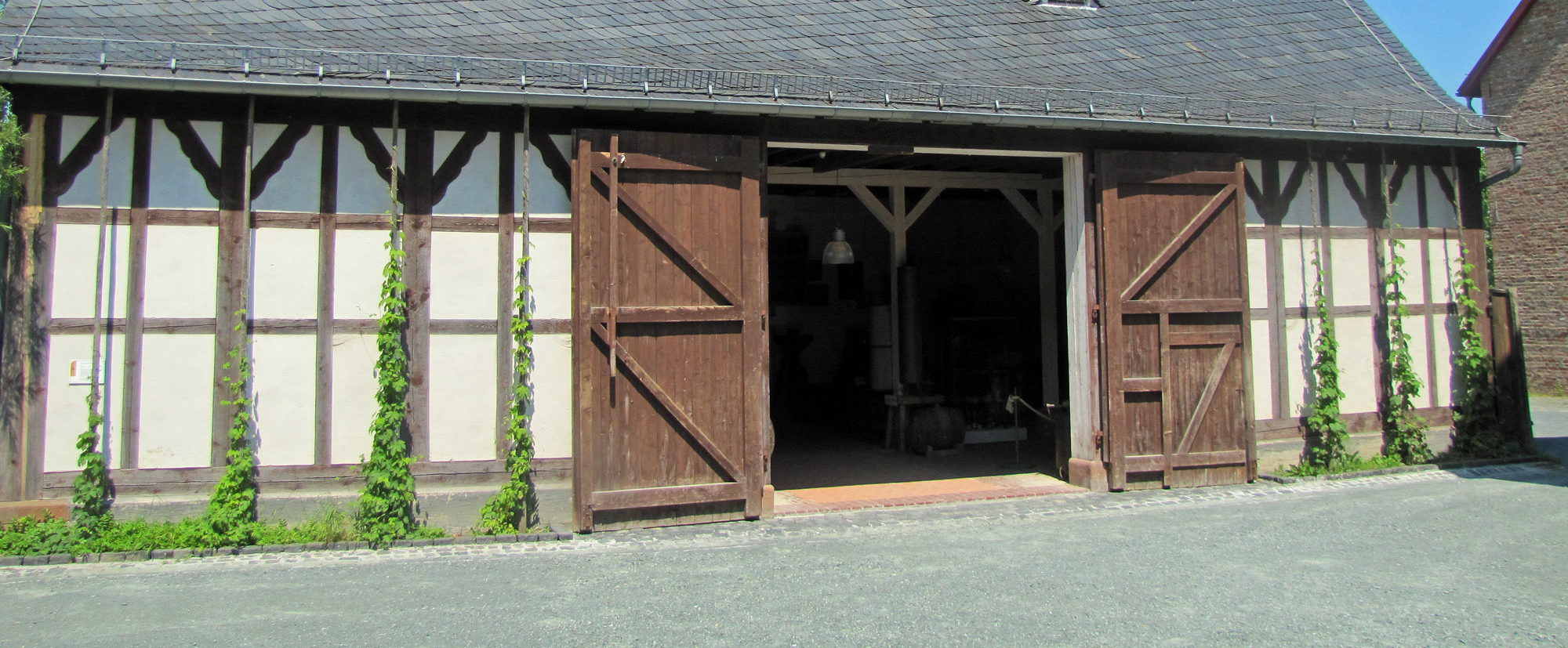 The original ornamental timber-framed barn from Hadamar dates from around 1700. It was part of the baroque Fohlenhof that belonged to the stud farm and the castle of the Counts of Nassau-Hadamar. In the mid-1970s, due to a repurposing of the site, the building had to make space for a new construction on Gymnasiumstraße. Although it was too late for a controlled dismantling of the building, the Open Air Museum was still able to carry out an on-site measurement of the structure. In 1991, the barn was replicated on the grounds of the Open Air Museum based on the documented floor plans. Today it is used as an events venue.