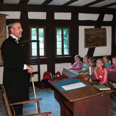 Bei diesem Projekt erleben die Teilnehmer einen Schulunterricht, wie er vor ca. 100 Jahren stattgefunden hat und gewinnen so einen Eindruck vom Alltag der Kinder im historischen Hessen.