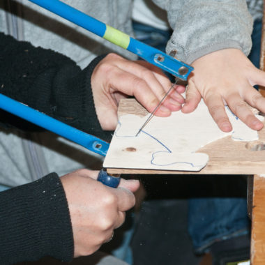Hier entstehen tolle Figuren aus Holz, die nach dem Aussägen noch bunt bemalt werden können.