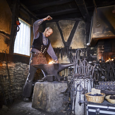 Hier könnt Ihr in einer echten Schmiede Stahl im Feuer erwärmen und anschließend bearbeiten.