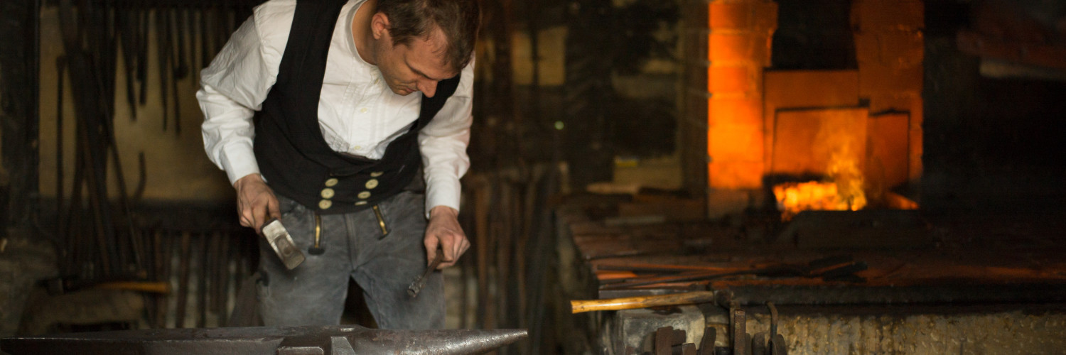 The blacksmith’s craft is one of the oldest, and for a long time it was also one of the most important crafts. A blacksmith’s diverse responsibilities covered a lot of ground. The village smith, a blacksmith or nailsmith, made almost all iron objects required, which ranged from nails through hooks, door fittings, fences, gates, funerary crucifixes, tools and iron hoops for cart wheels all the way to iron shoes for horses and cattle. In addition, a wide variety of specialised smiths developed over the years depending on local requirements and other conditions, such as smiths for chains, scythes, knives, axes, copperware or nails.