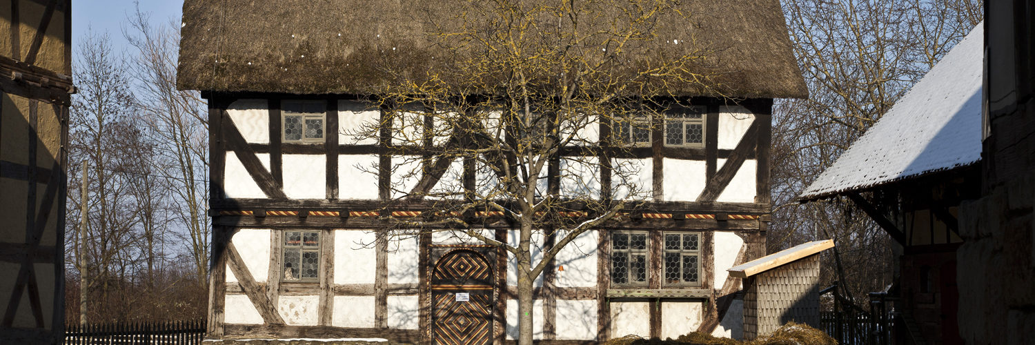 The two-storey residential house from Nieder-Gemünden was originally part of a three-sided farmstead. In the 1960s it increasingly became a traffic obstacle, and after a tank accident involving a neighboring building the pressure to widen the road grew. In 1979 the decision was made to dismantle the house. Between 1979 and 1982 it was reconstructed at the open-air museum. From 2021 to 2025 the building underwent extensive restoration. Today the ensemble is presented in the time frame around 1910 – complete with a large manure heap in the courtyard.