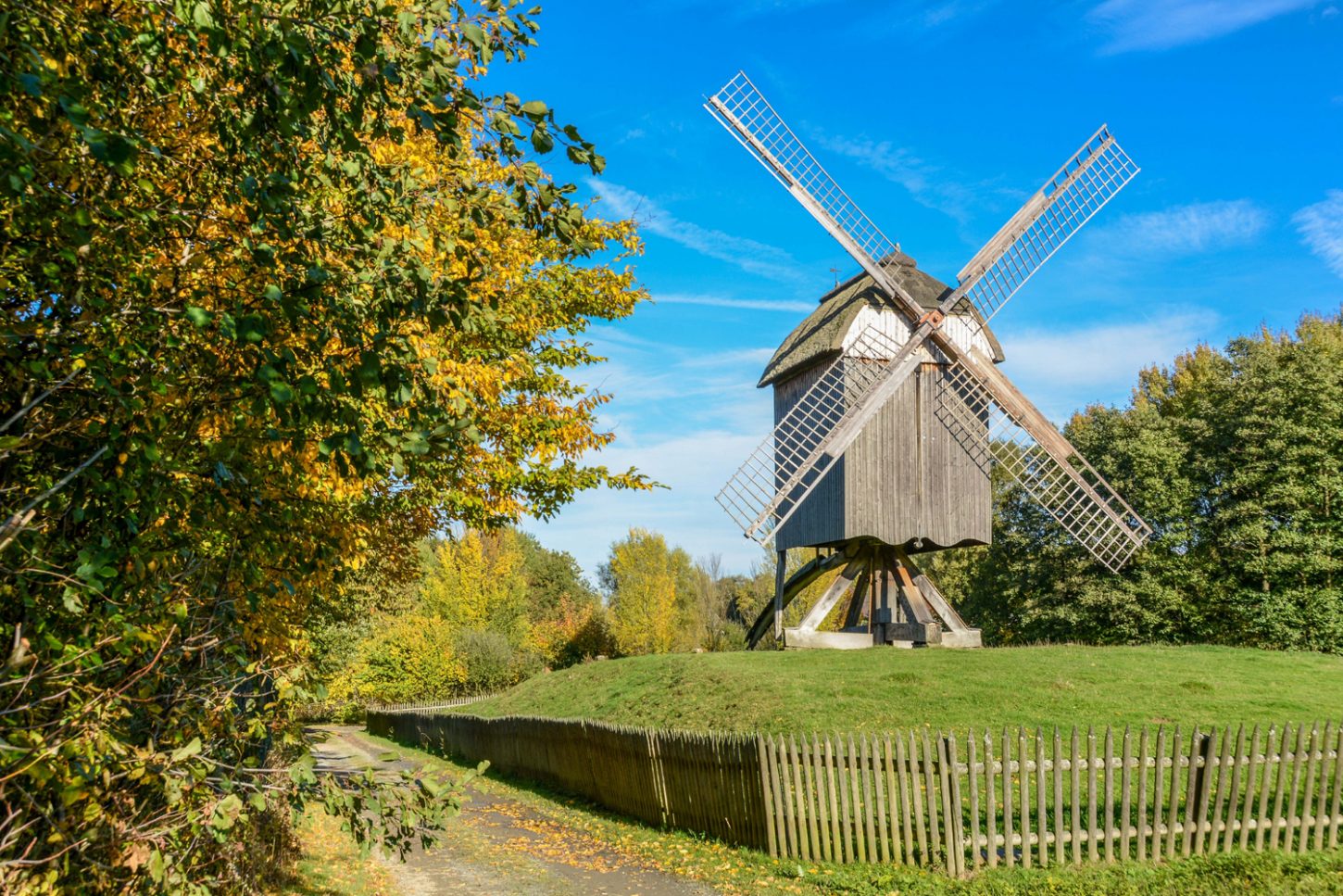 In earlier times, water mills were common throughout Hesse. There were also two types of windmill: the older post mill (Bockwindmühle) where the sails turned in the wind around the whole body of the mill, and the Dutch windmill, where only the upper part has to be positioned accordingly. All three types of mill can be discovered on this themed route in Hessenpark.