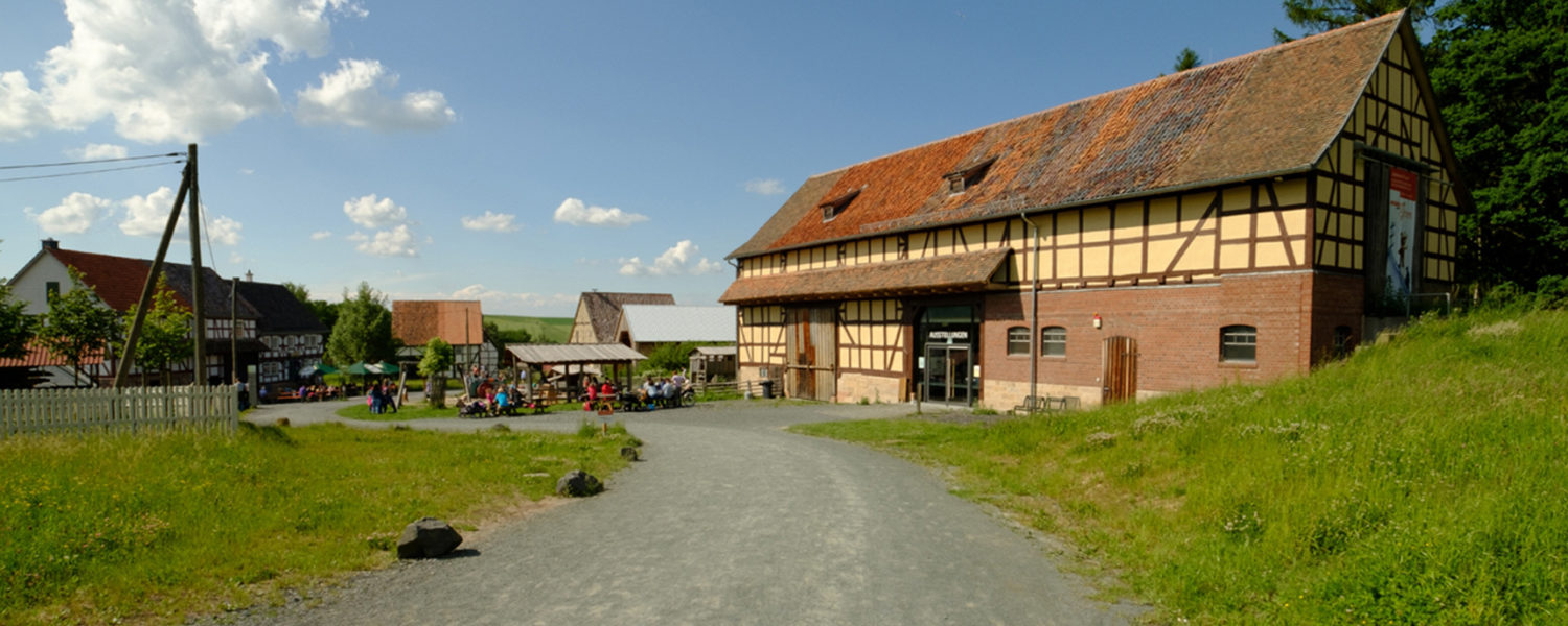 The stable barn from Asterode, the biggest exhibition building of the Open Air Museum, is part of the Northern Hesse Ensemble. It houses annually changing major exhibitions. The exhibition building is equipped with modern facilities such as an elevator so all storeys are fully accessible. An accessible toilet is located on the first floor. When designing/laying out the exhibition we keep in mind that all exhibition objects should be easily accessible and that the installations still leave enough room for access with wheelchairs and prams.