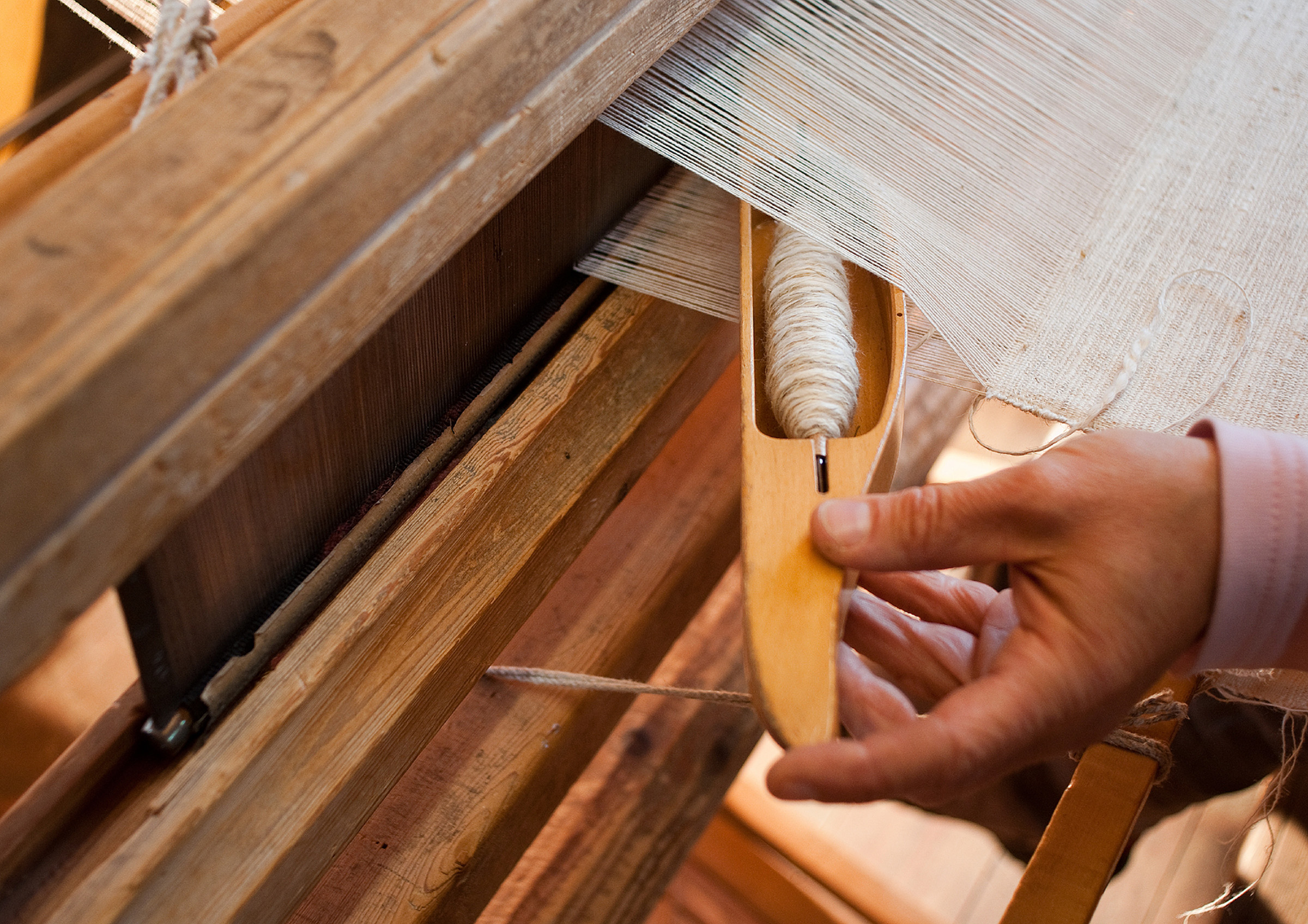 Im Haus aus Grebenau treffen Besucher*innen im 1. Stock die Weberin.