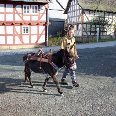 Der Hessenpark plant so, in Zukunft eventuell ein neues Vorführhandwerk anbieten zu können. Wäre es nicht toll, wenn an den Mühlentagen die Esel das Getreide transportieren?