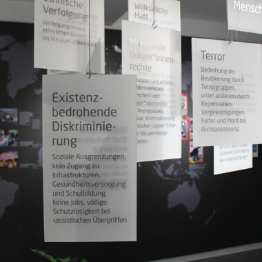 Blick in die Dauerausstellung im Haus Heck. Man sieht eine ausgezogene Schublade mit Erklärungen.