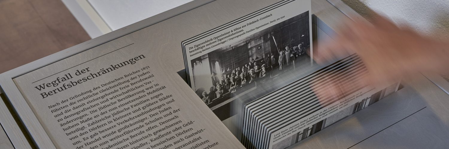 Kern der Ausstellung sind jüdische Familienbiografien, die von der Mitte des 19. Jahrhunderts bis teilweise in die Gegenwart rekonstruiert werden. Die jüdischen Familien stammen aus Groß-Umstadt, Oberursel, Michelstadt und Fränkisch-Crumbach und werden zu Beginn in digitalen Blätterbüchern vorgestellt. In der Ausstellung erzählen Familienfotos, Dokumente und andere biografische Quellen individuelle Lebensgeschichten. Auch werden anhand der persönlichen Dokumente das Berufsleben, der Glaube, die Kultur, der Alltag sowie die Emanzipation, Integration und Verfolgung der Juden beleuchtet. Besucher erfahren, welche Berührungspunkte es zwischen jüdischen und nicht-jüdischen Dorfbewohnern gab, welchen Einfluss die Religion auf das tägliche Leben der jüdischen Bürger hatte, welche Berufe sie überwiegend ausübten und wie sich ihre gesellschaftliche und rechtliche Stellung im Laufe der Zeit veränderte.