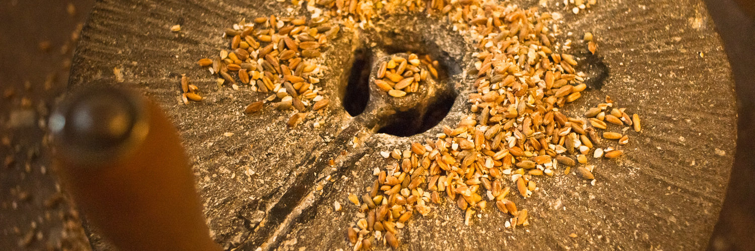 Mahlstein im Backhaus mit Körnern