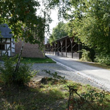 Blick in die Baugruppe Werkstätten. Links im Bild: Die Schmiede aus Selters