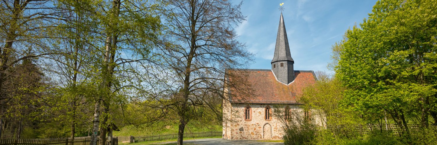 Die Wände der Kapelle bestehen aus Bruchstein, die Ecken aus behauenen Quadern. Vier Fensteröffnungen auf der Südseite und ein Fenster im Osten wurden mit gotischem Maßwerk versehen. Auf dem steilen Satteldach mit Biberschwanzeindeckung sitzt ein achtseitiger Dachreiter mit Schall-Luken, der mit Schiefer eingedeckt wurde. Er trägt einen Spitzhelm und ein Turmkreuz mit einem vergoldeten Wetterhahn. Das Dachwerk mit dem Dachreiter stammt noch aus dem 15. Jahrhundert. Die ältere der beiden Glocken trägt die Jahreszahl 1479, die jüngere 1516. Sie hängen heute in der Friedhofskapelle in Lollar. Für den Wiederaufbau im Freilichtmuseum wurden 1984 zwei Glocken neu gegossen. Die Kapelle wurde auf einem rechteckigen Grundriss ohne Chorraum errichtet. An einer Sakramentsnische nahe beim Altar erkennt man, dass hier in der Zeit vor der Reformation katholische Messen gefeiert wurden. Die 1934 nach Befund rekonstruierte kassettierte Flachdecke ruht auf einem mittleren Unterzug, der von zwei Holzstützen getragen wird. Die westliche Stütze stammt vermutlich noch vom Ursprungsbau während die östliche Stütze, die den Dachreiter trägt, um 1600 eingefügt wurde. Infolge des Bevölkerungswachstums stieg die Zahl der Gottesdienstbesucher seit der zweiten Hälfte des 16. Jahrhunderts an, so dass wiederholt die Anzahl der Plätze durch den Einbau von Emporen vergrößert werden musste. Um 1600 wurde die Westempore, im 18. Jahrhundert die Nordempore und im 19. Jahrhundert die Ostempore eingebaut. Die beiden letzteren sowie das Gestühl wurden im Freilichtmuseum nicht wiederaufgebaut, da man hier die Kirche in ihrem Zustand um 1600 darstellen wollte. Da es für den Fußboden keine Hinweise für die Zeit um 1600 gab, wurde er mit neuen ornamentierten Bodenfliesen belegt.