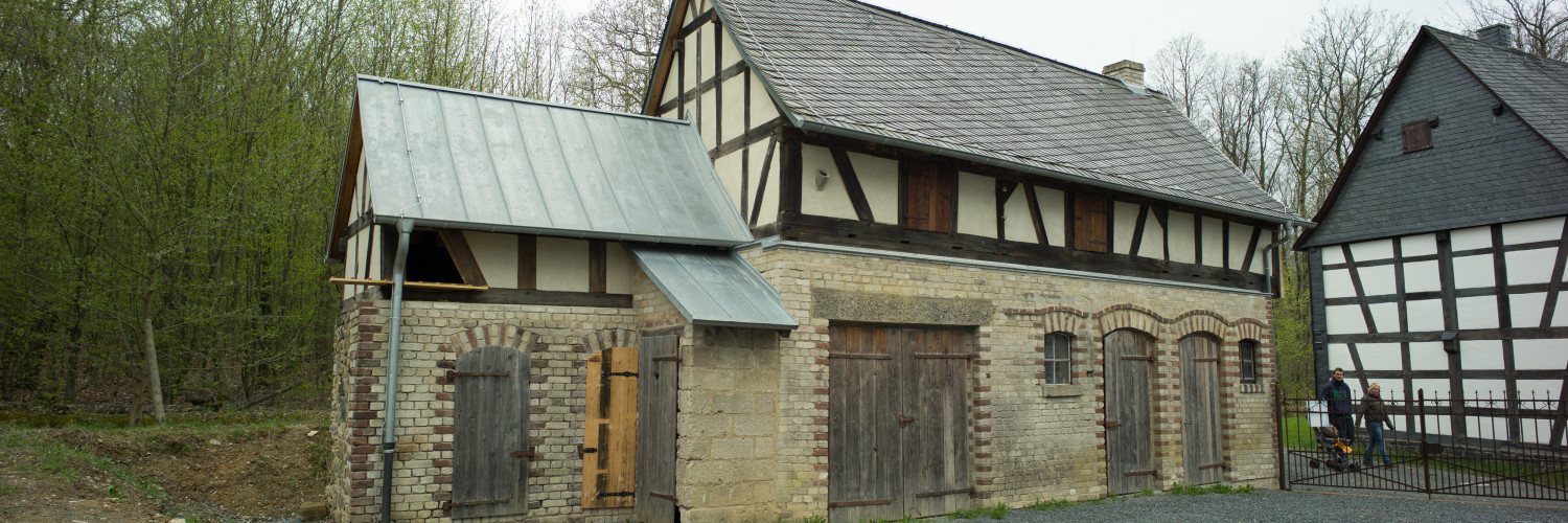 Im Freilichtmuseum wird die ehemalige Garage für eine kleine Dauerausstellung mit dem Thema „Flickwerk. Selbermachen zwischen Not und Sparsamkeit“ genutzt.