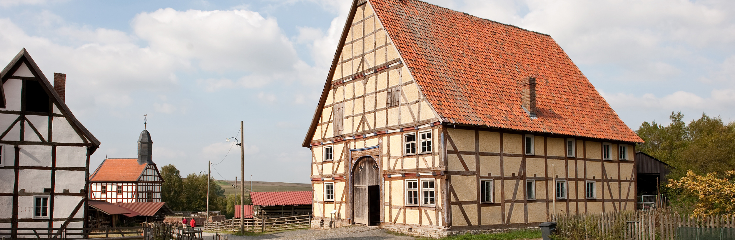 Das imposante zweigeschossige Haus aus dem heutigen Landkreis Kassel fällt schon von Weitem durch die leuchtend gelbe Farbgebung und den vorkragenden Schaugiebel auf. Der Erbauer Johann Conrad Austermühle zählte laut Katastereintrag von 1760 zu den vermögenderen Dorfbewohnern, da er zu seinem Gehöft einige größere Ackerflächen erwerben konnte.