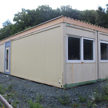 Containerunterkunft für Geflüchtete aus Oberursel aus dem Jahr 1990, die 2023 im Freilichtmuseum Hessenpark wiedererrichtet wurde.