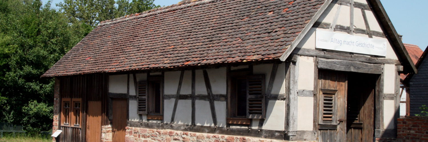 Im Innenraum ist die kleine Ausstellung „Feuer und Flamme“  zu sehen. Sie rückt die Brandbekämpfung in den Fokus und macht die Geschichte der Feuerwehr am Beispiel der Hausgeschichte des ehemaligen Feuerwehrgerätehauses aus Hainstadt sichtbar.